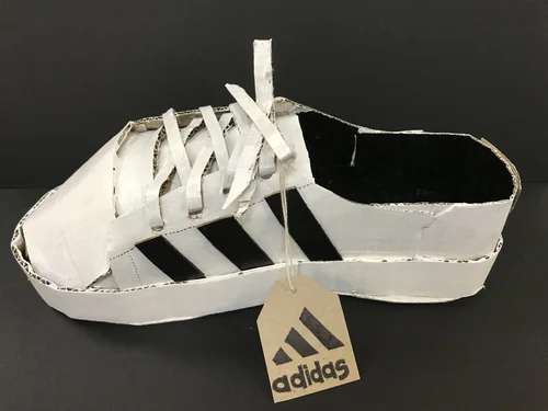 Students design and sculpt shoes entirely out of recycled cardboard, using only masking tape and Elmer's glue to assemble. This challenging project promotes creative thinking and problem solving skills, perseverance, and patience.